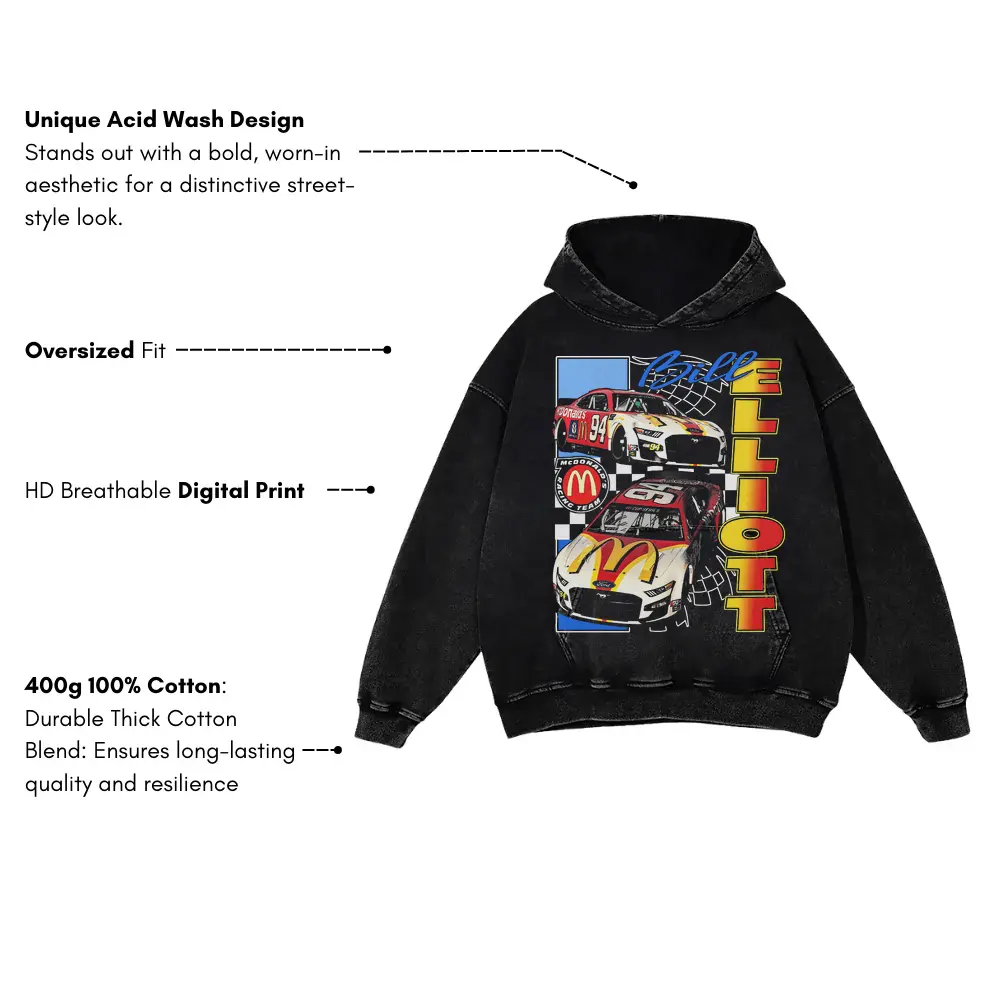 Awesome Bill Elliott Legacy Aicd Wash Oversized Hoodie