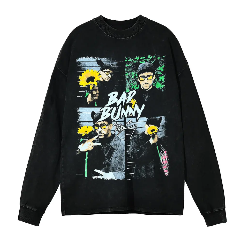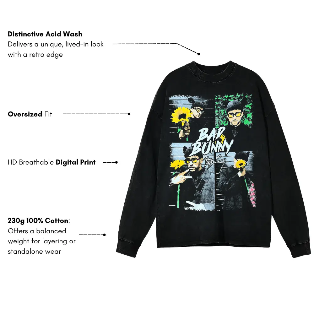Bar Bunny El Apagon Aicd Wash Oversized Long Sleeve Shirt