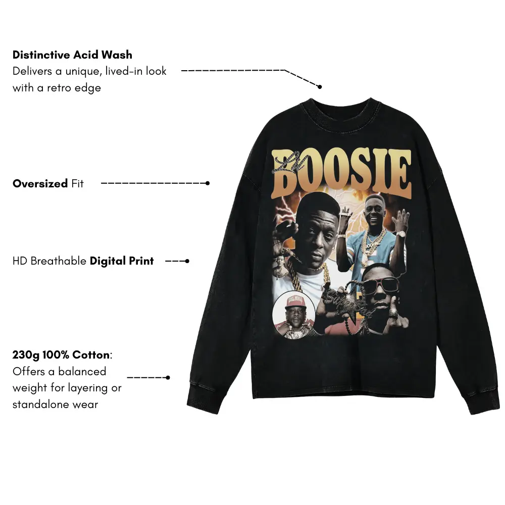 Boosie Badazz Collage Aicd Wash Oversized Long Sleeve Shirt