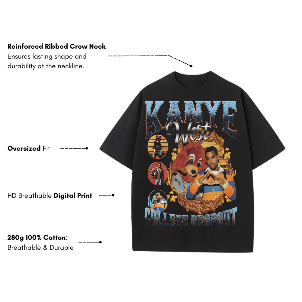College Dropout Vibrance Heavyweight Oversized Black Graphic Tee