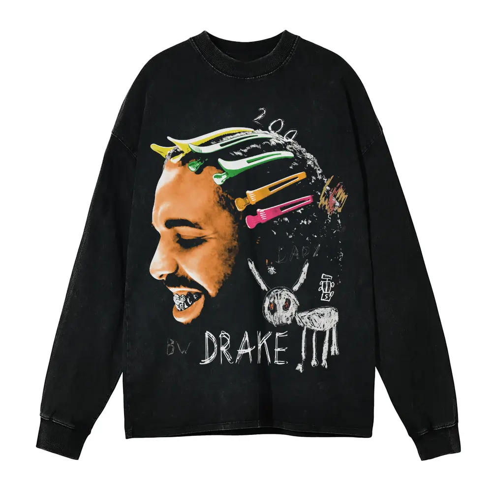 Drake 2 0 Illustration Aicd Wash Oversized Long Sleeve Shirt