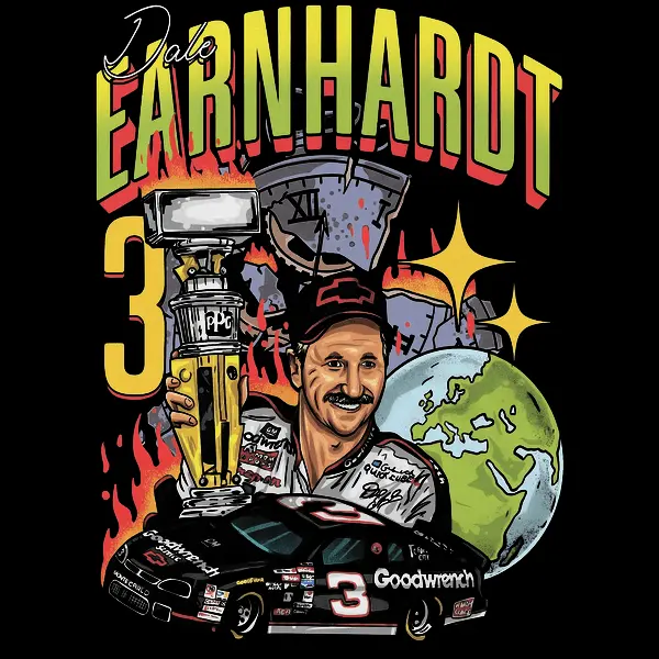 Earnhardt Legend Number Three Oversized Black Graphic Tee