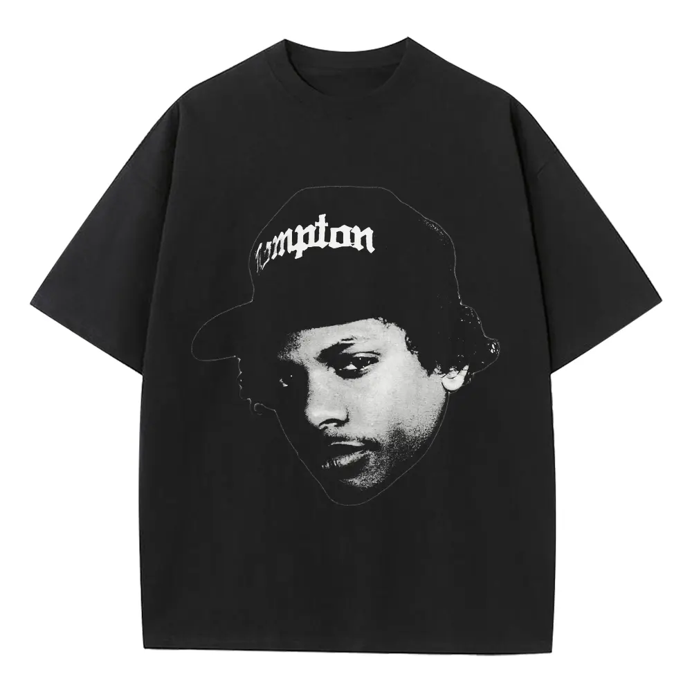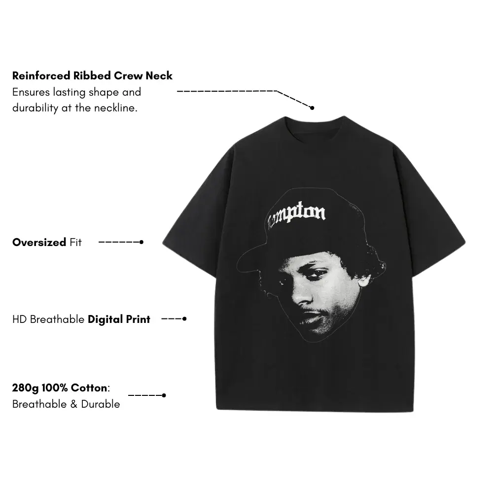 Eazy E Compton Hat Heavyweight Oversized Black Graphic Tee