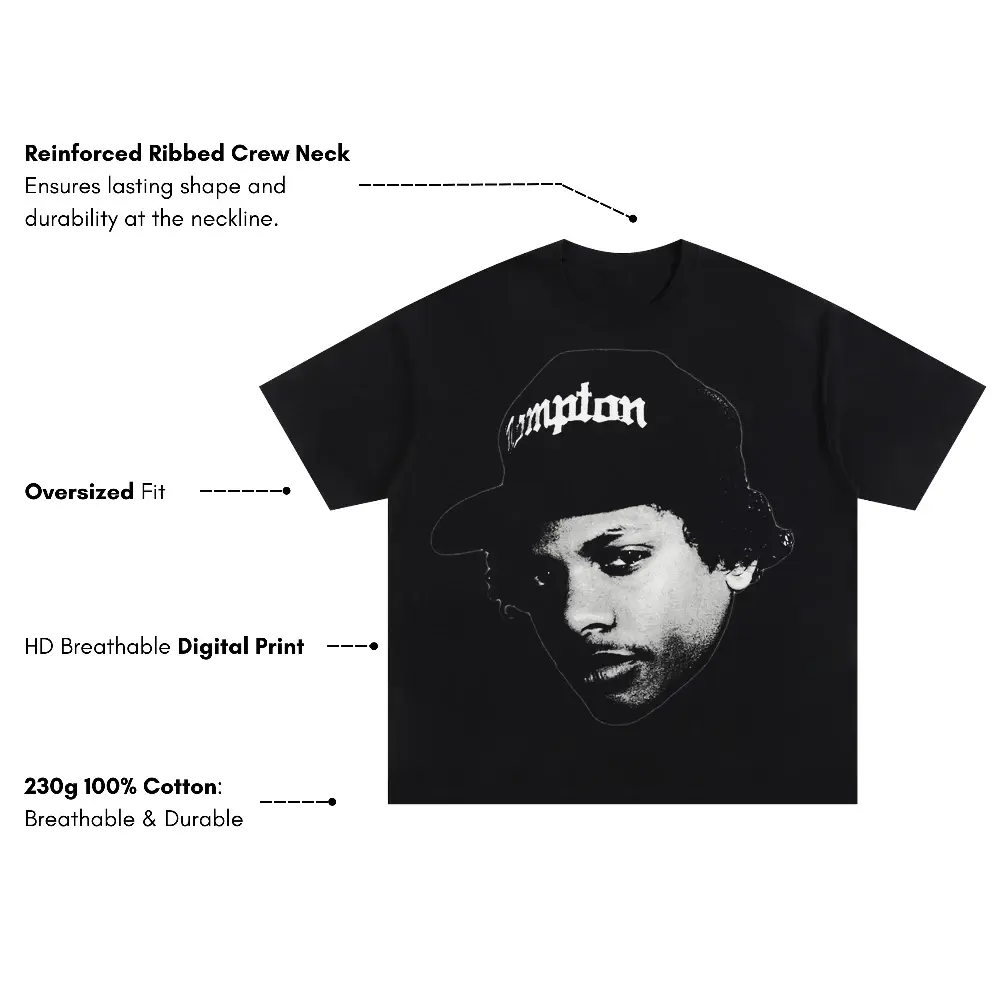 Eazy E Compton Hat Oversized Black Graphic Tee