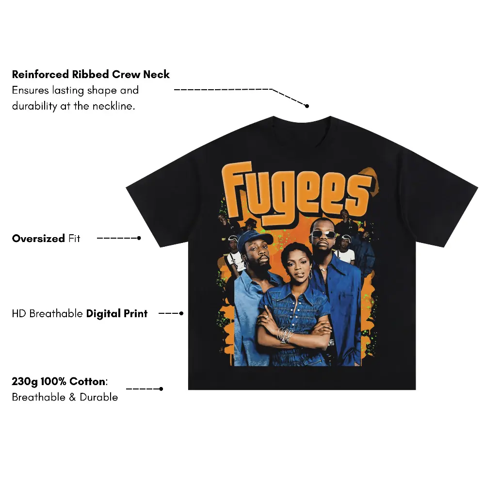 Fugees The Score Tribute Oversized Black Graphic Tee