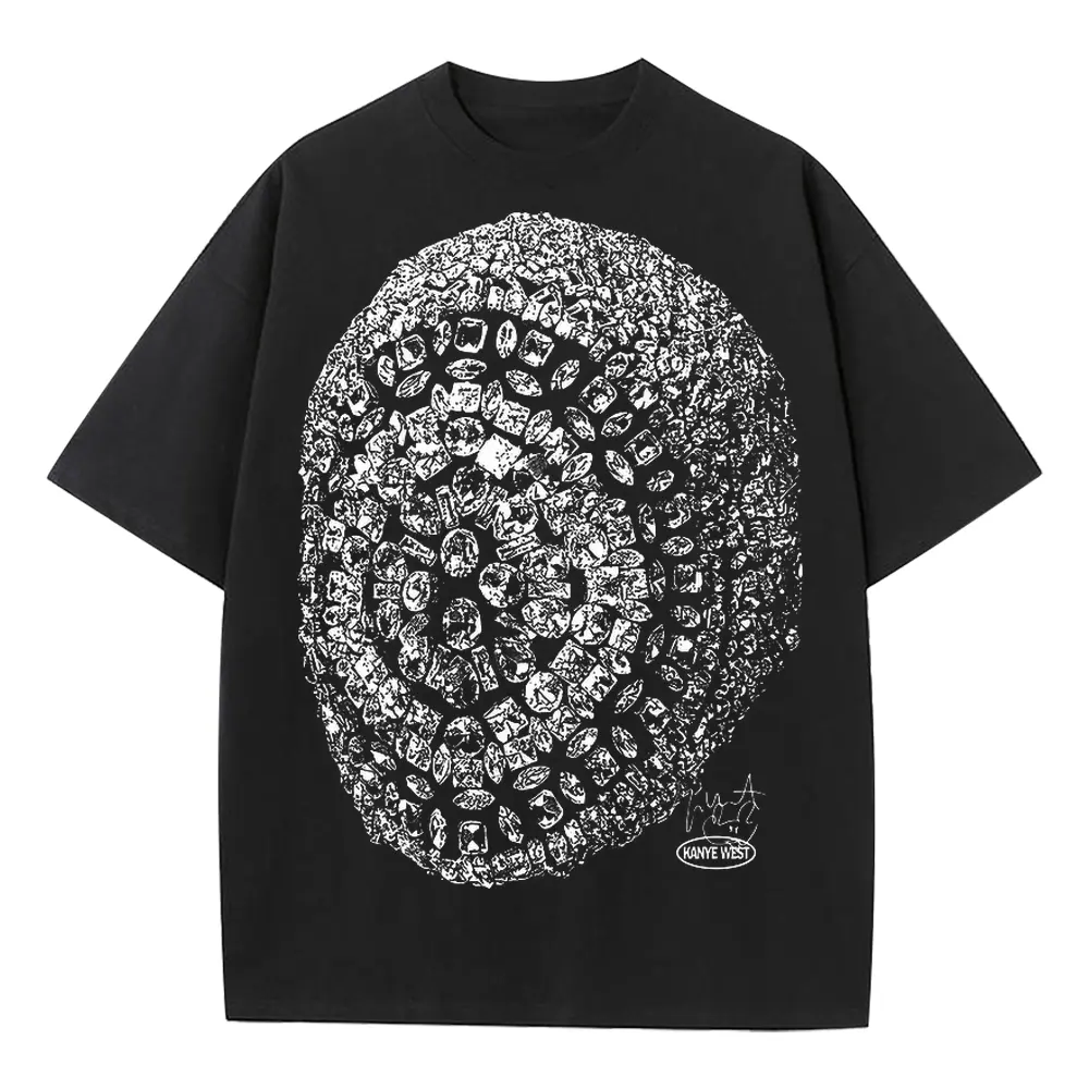 Intricate Shell Design Heavyweight Oversized Black Graphic Tee
