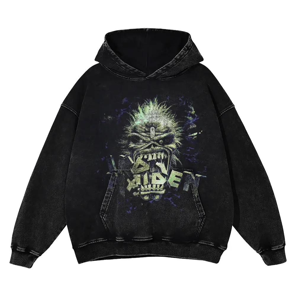 Iron Maiden Eddie Head Aicd Wash Oversized Hoodie
