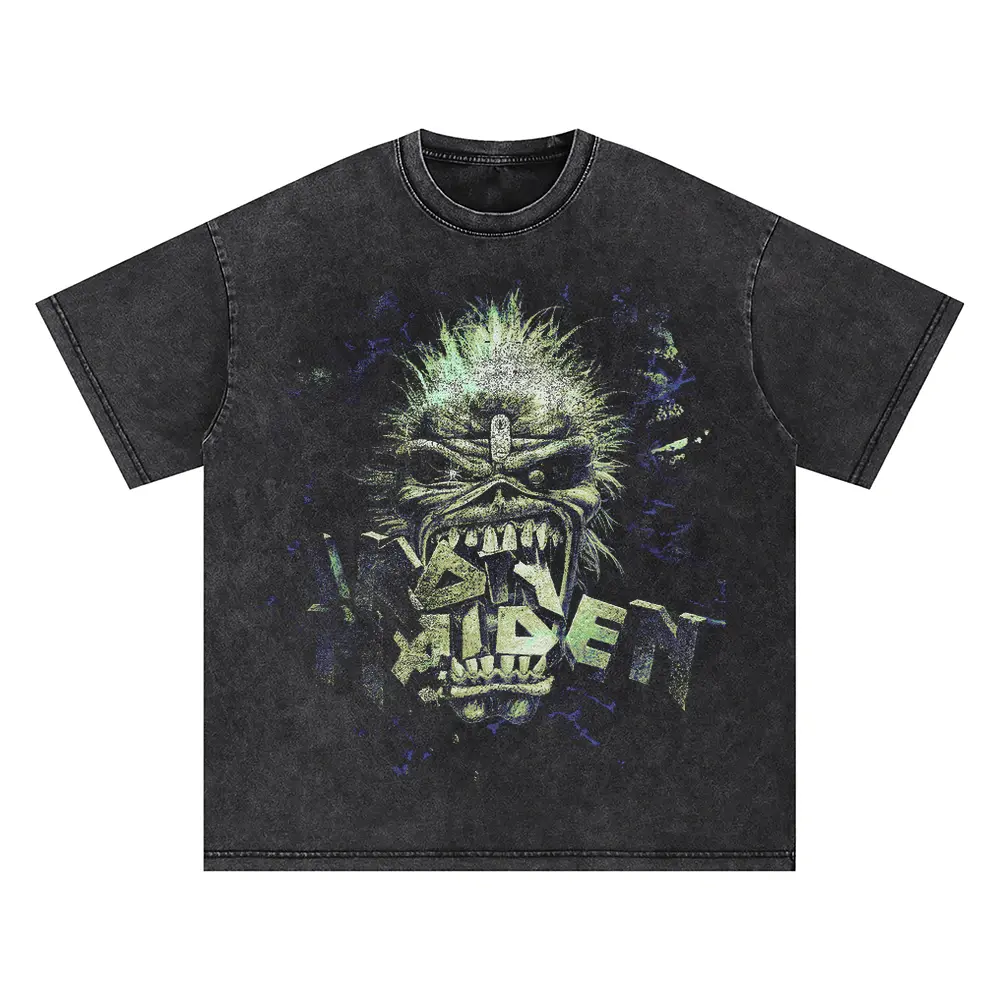 Iron Maiden Eddie Head Oversized Acid Wash T-shirt