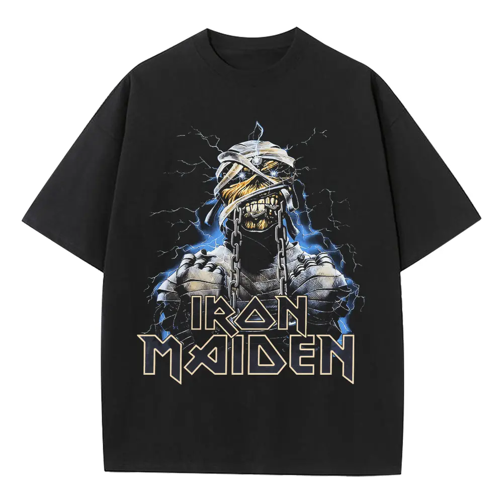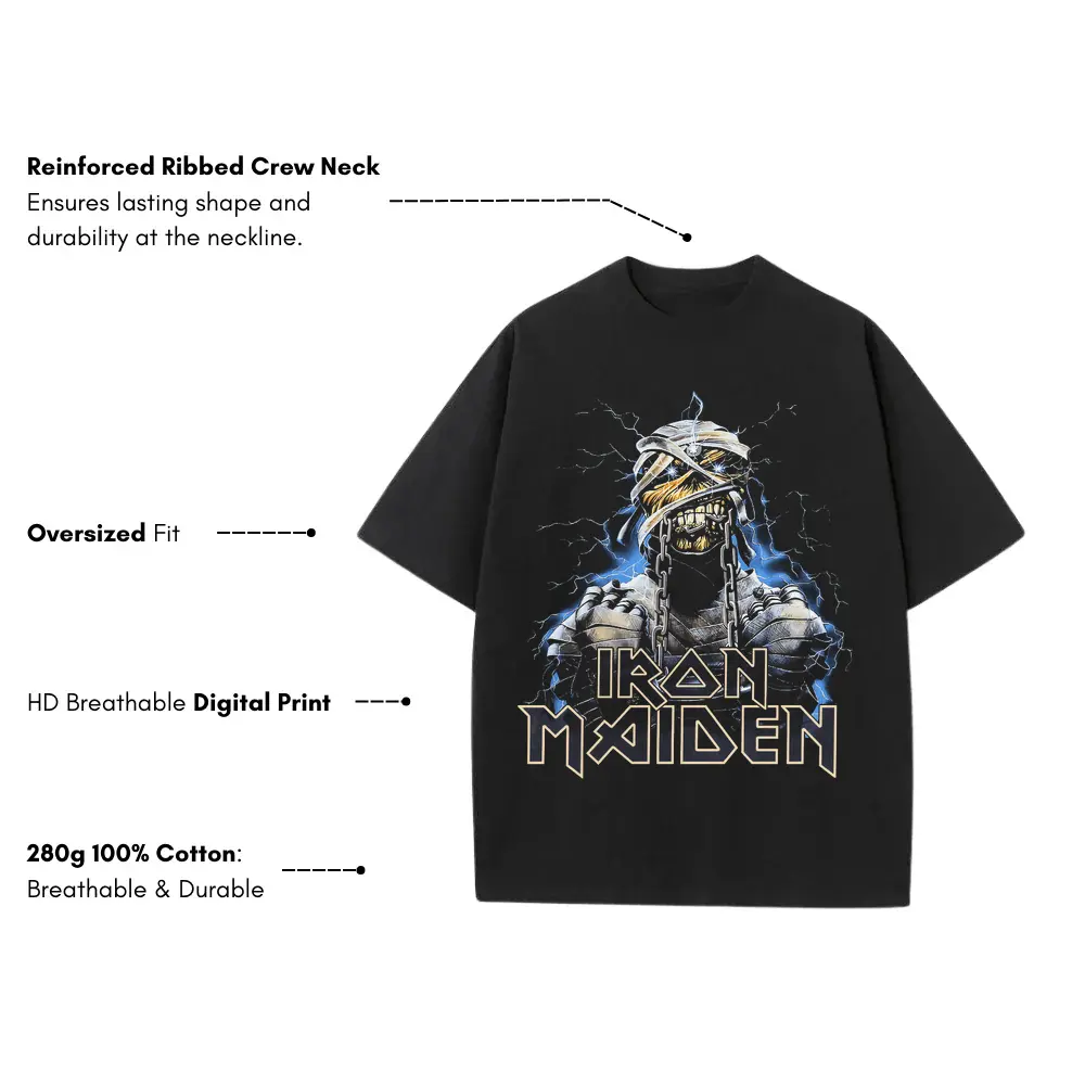 Iron Maiden Powerslave Heavyweight Oversized Black Graphic Tee