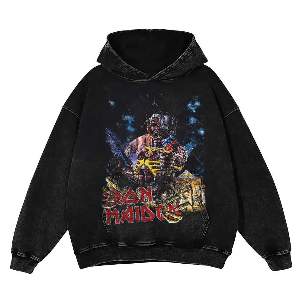 Iron Maiden Slam Dunk Aicd Wash Oversized Hoodie
