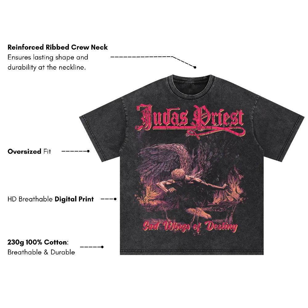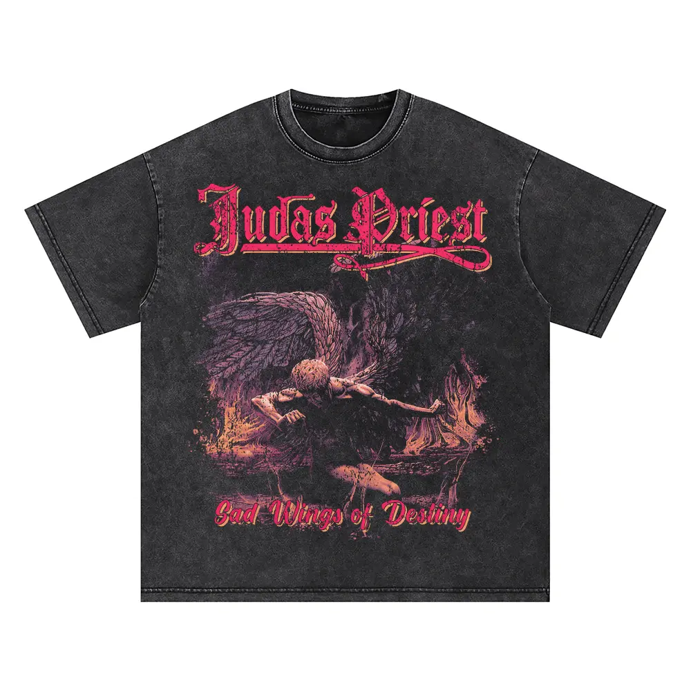 Judas Priest Sad Wings Of Destiny Oversized Acid Wash T-shirt