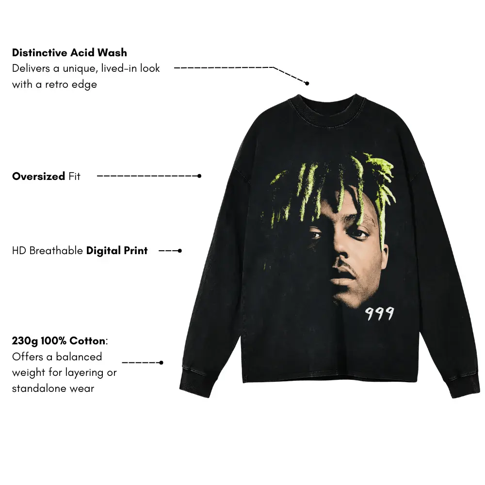 Juice WRLD 999 Portrait Aicd Wash Oversized Long Sleeve Shirt