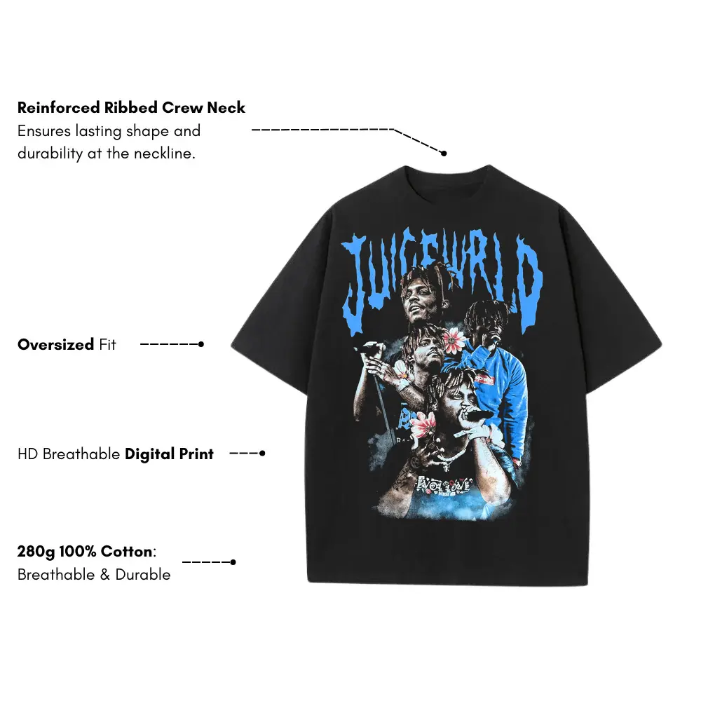 Juice WRLD Fighting Demons Heavyweight Oversized Black Graphic Tee