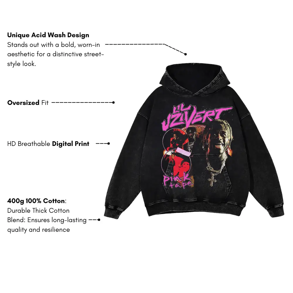 Lil Uzi Vert Collage Aicd Wash Oversized Hoodie