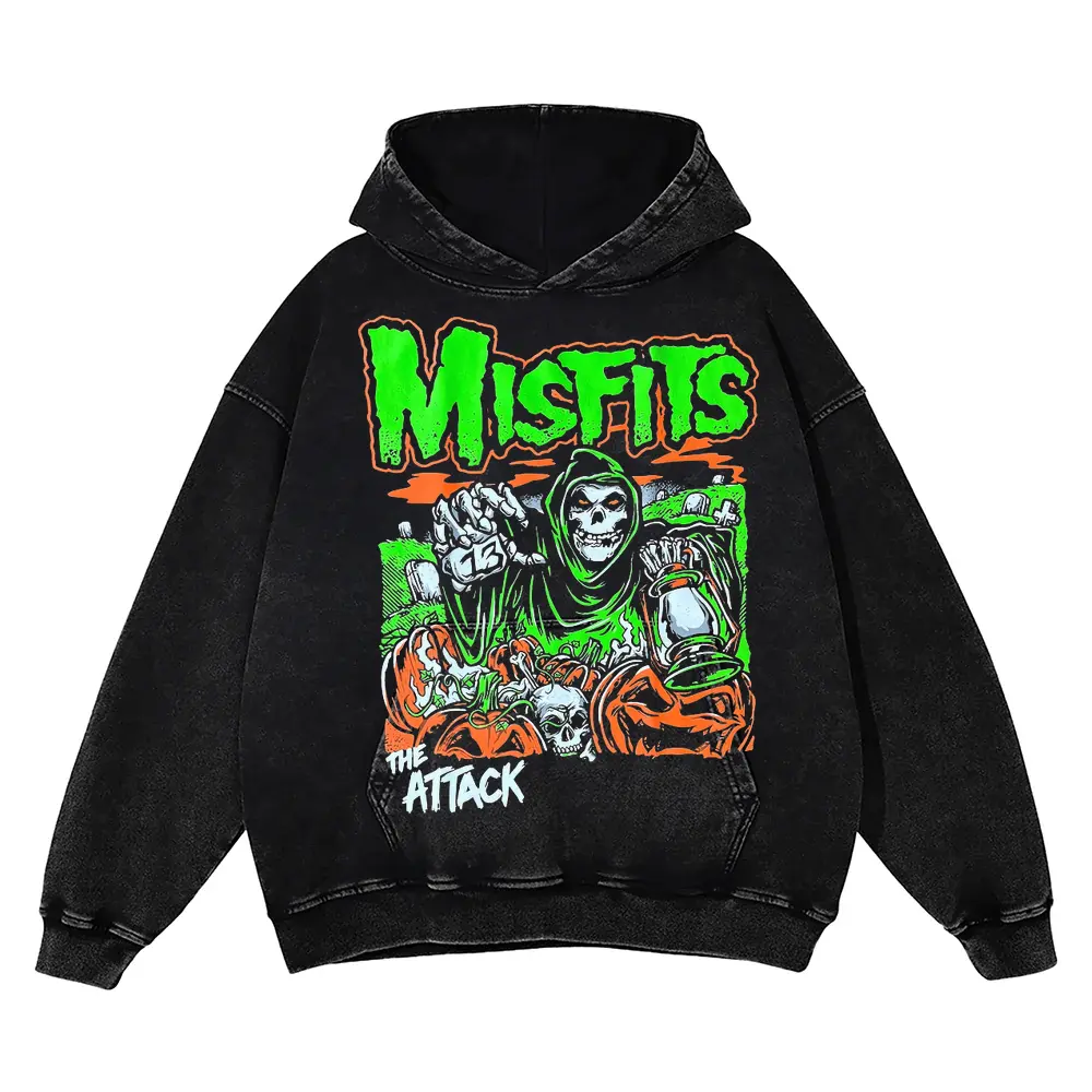 Misfits Green Attack Aicd Wash Oversized Hoodie