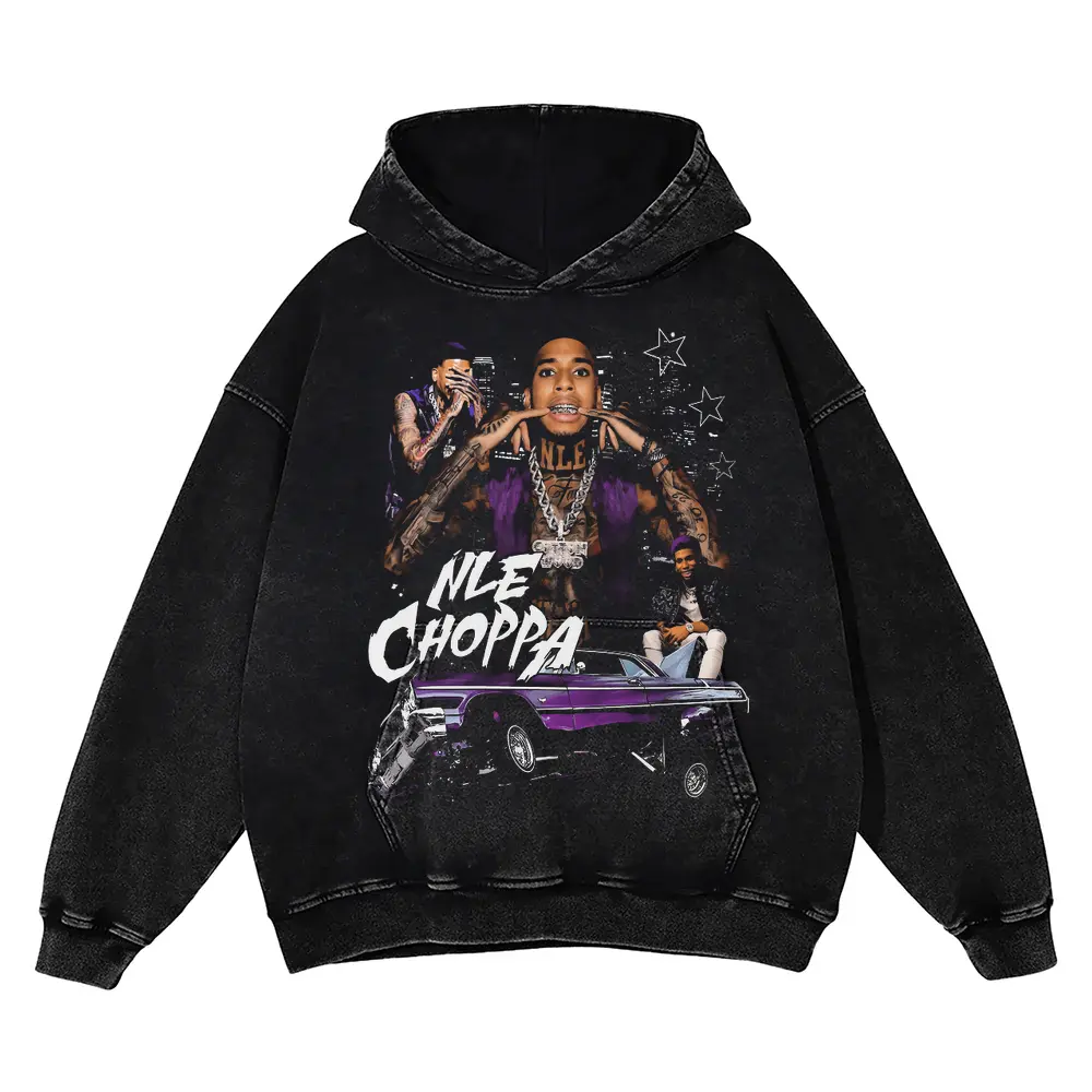 NLE Choppa Shotta Flow Aicd Wash Oversized Hoodie