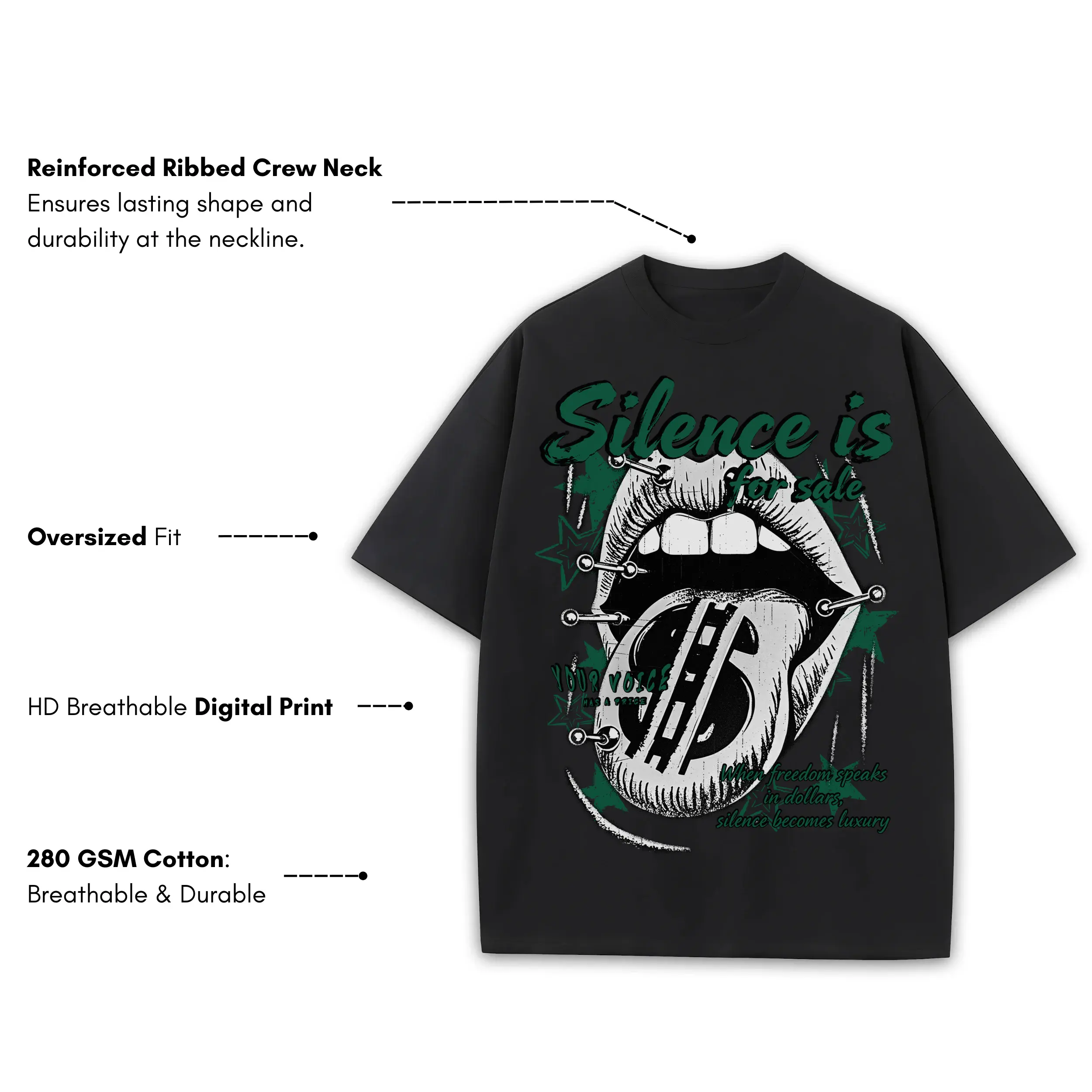 Pine Green x Silence is for sale Heavyweight Tee – Black
