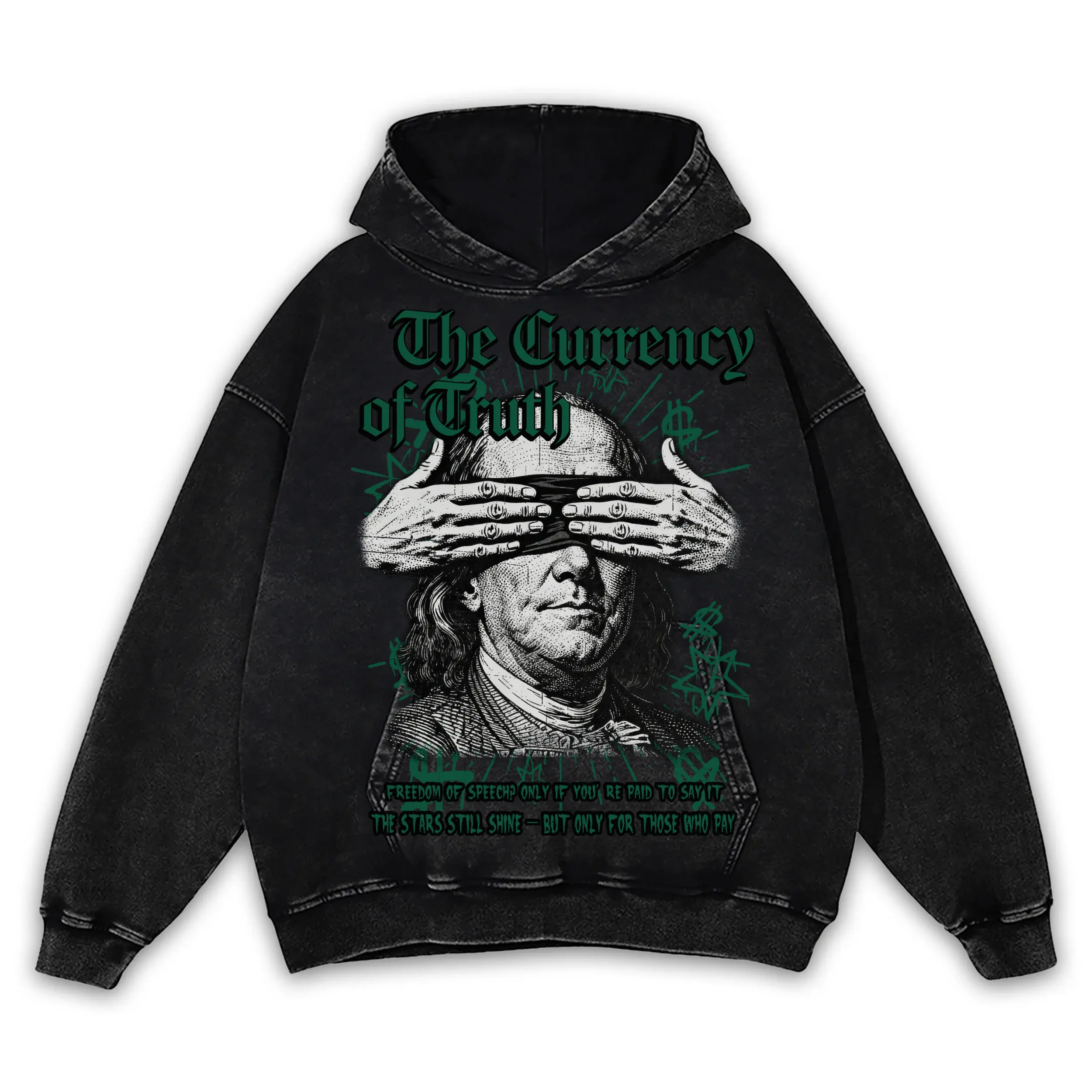 Pine Green x The Currency of Truth Vintage Acid Wash Hoodie – Black