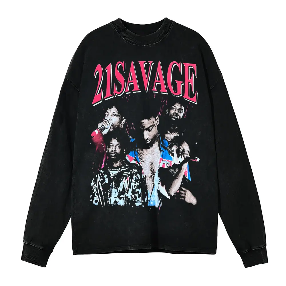 Pink Savage Aesthetic Aicd Wash Oversized Long Sleeve Shirt