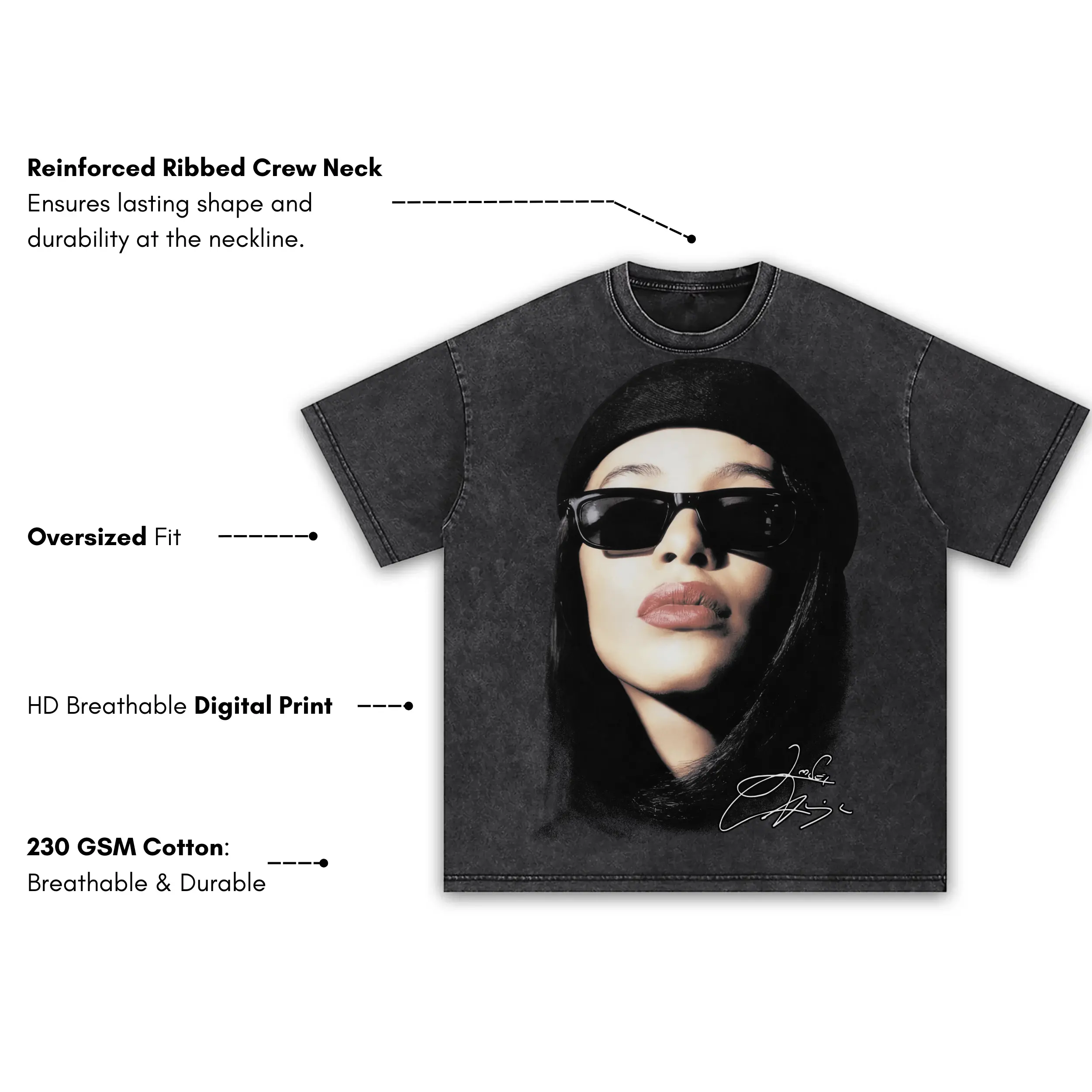 Retro Black x Aaliyah ‘Sunglasses’ Vintage Acid Wash Tee
