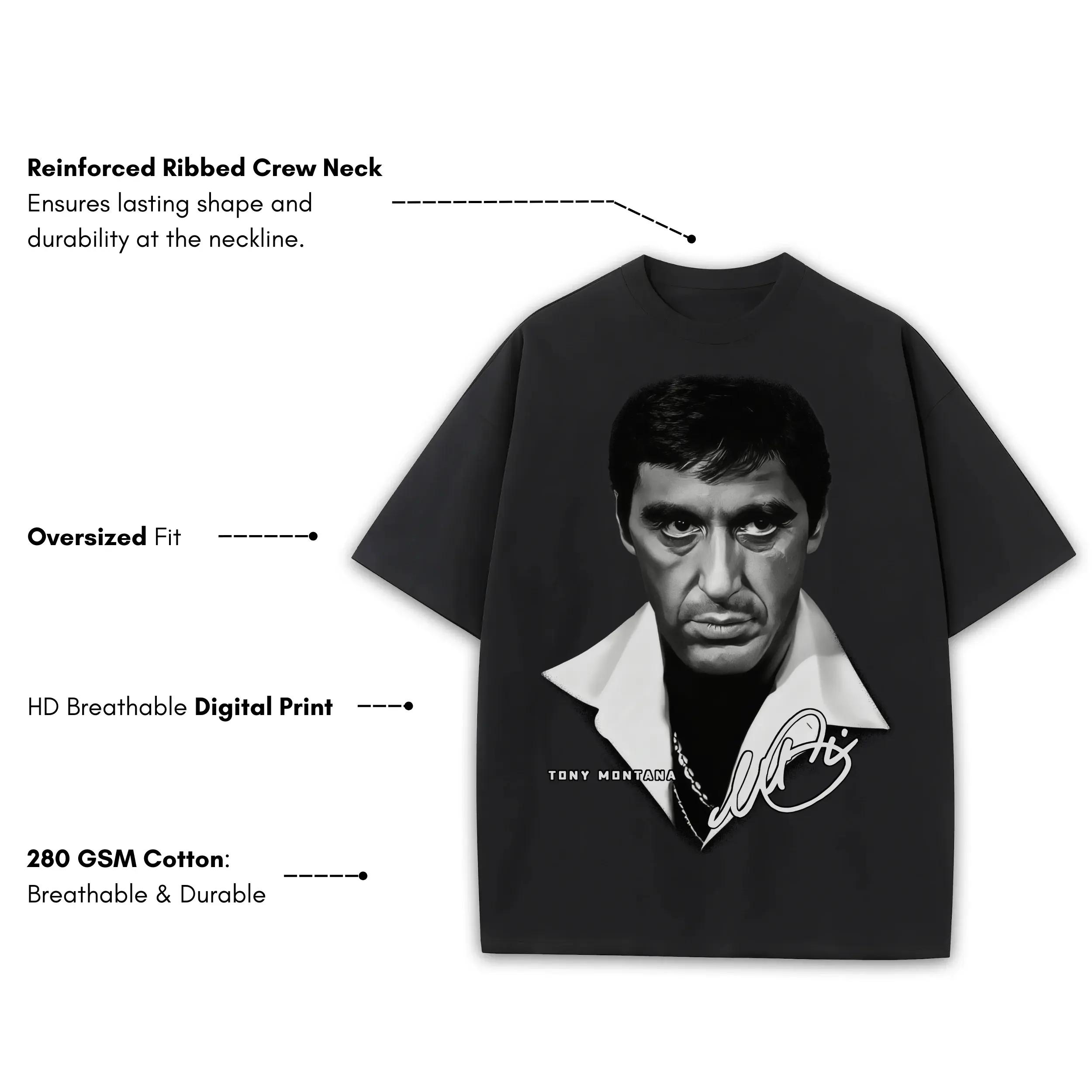Retro Black x Tony Montana ‘Sketch’ Heavyweight Tee – Black