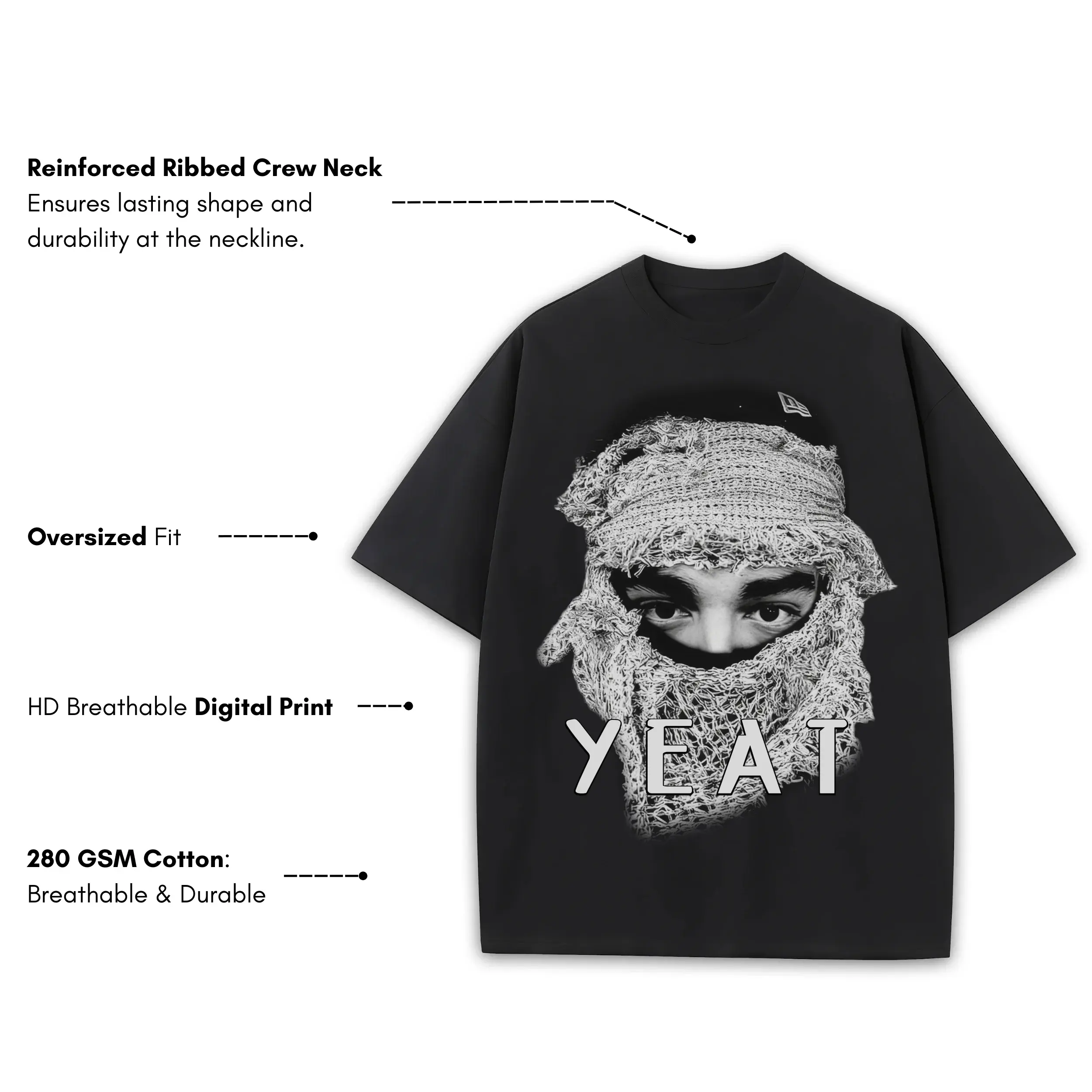 Retro Black x Yeat ‘Ski Mask’ Heavyweight Tee – Black
