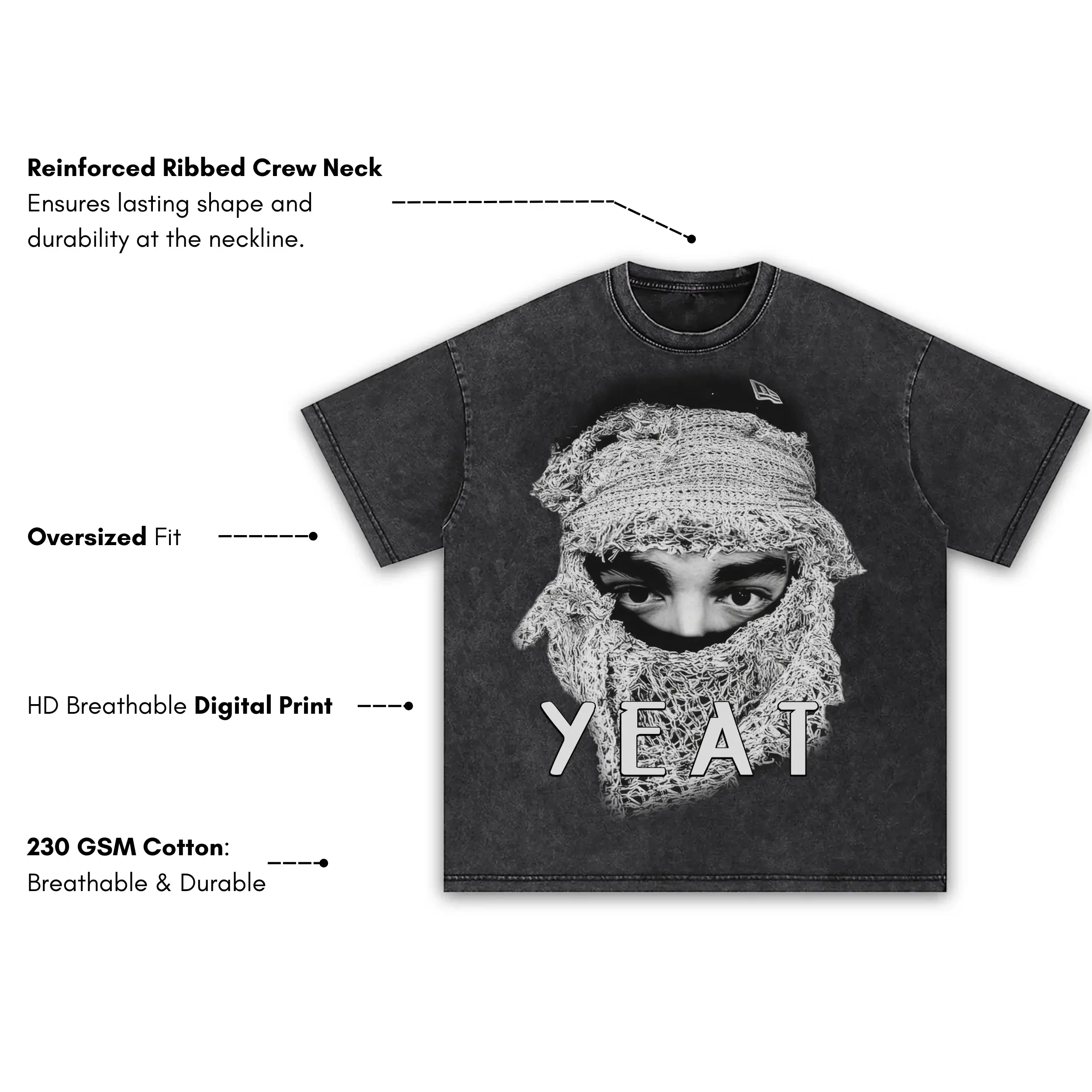 Retro Black x Yeat ‘Ski Mask’ Vintage Acid Wash Tee