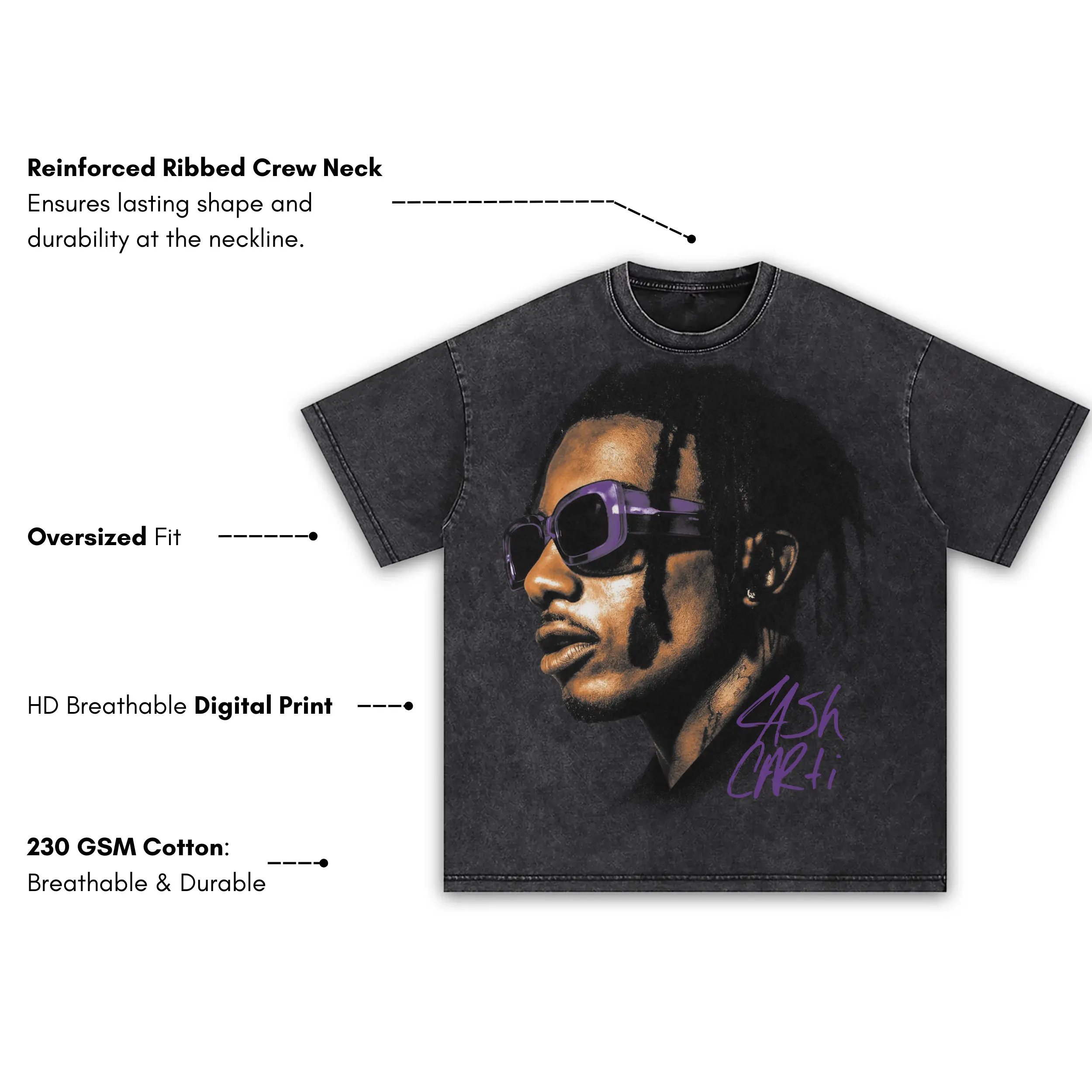 Retro Purple x Playboi Carti ‘Sunglasses’ Vintage Acid Wash Tee