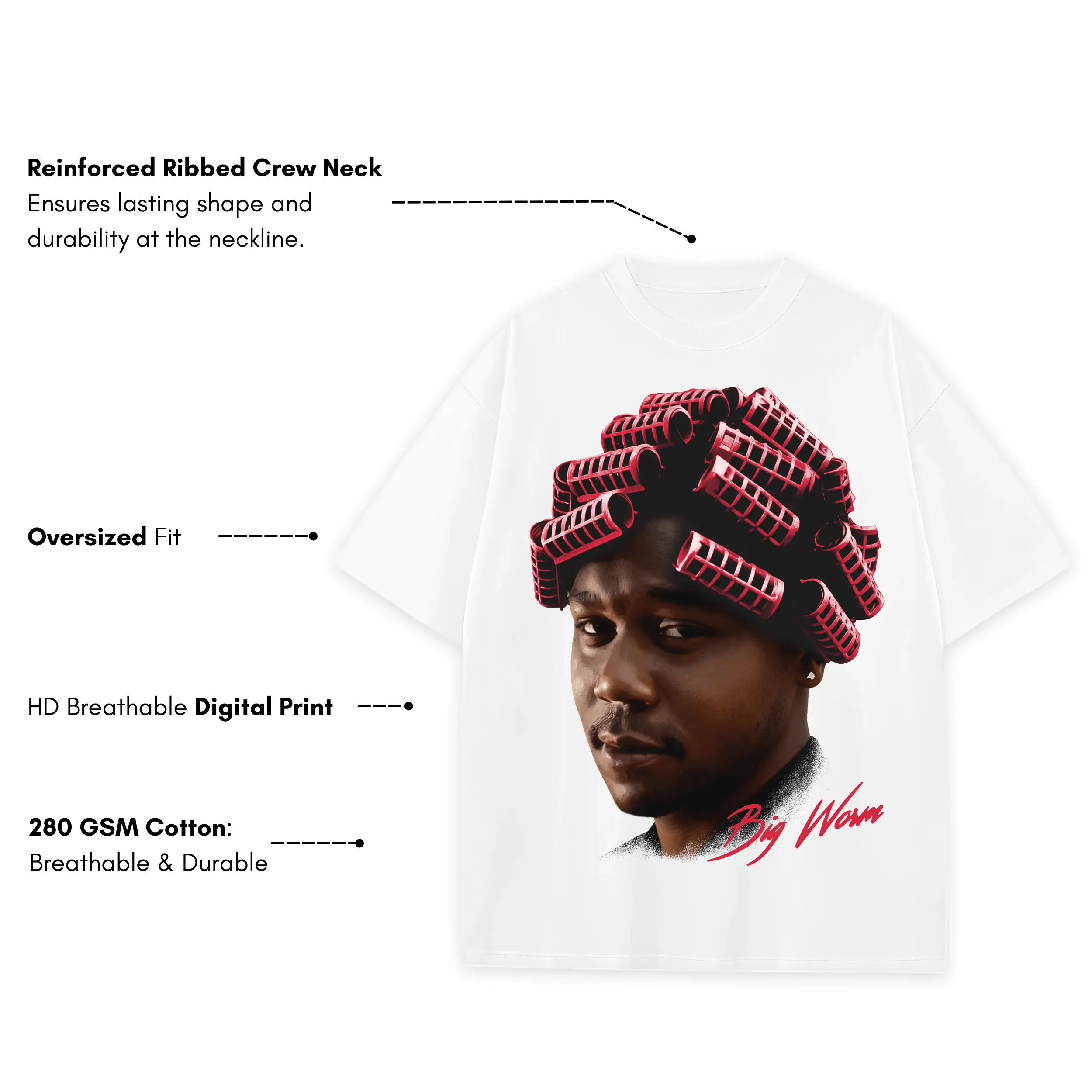 Retro Red x Big Worm ‘Rollers’ Heavyweight Tee – White