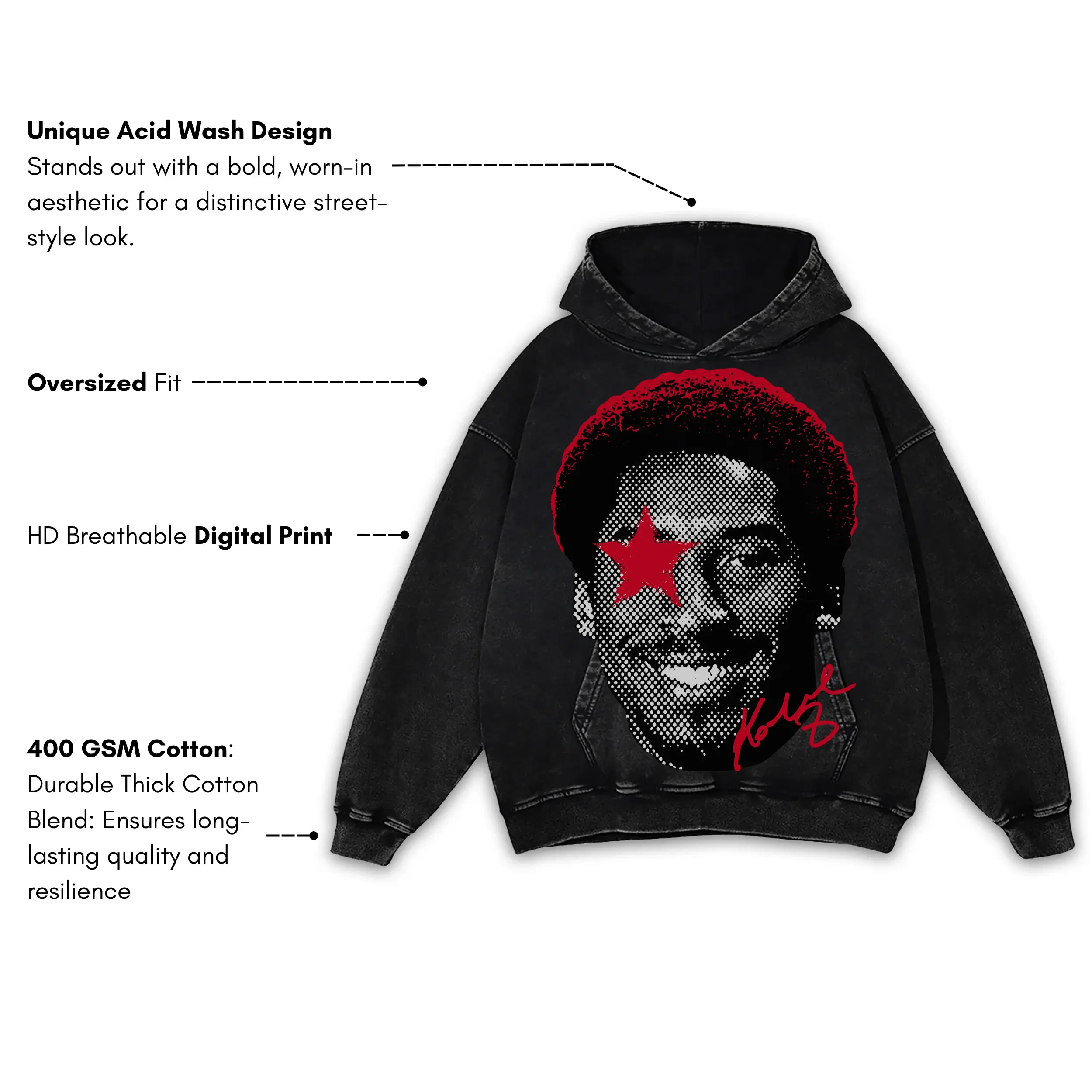 Retro Red x Kobe Bryant ‘Afro Dot’ Vintage Acid Wash Hoodie – Black