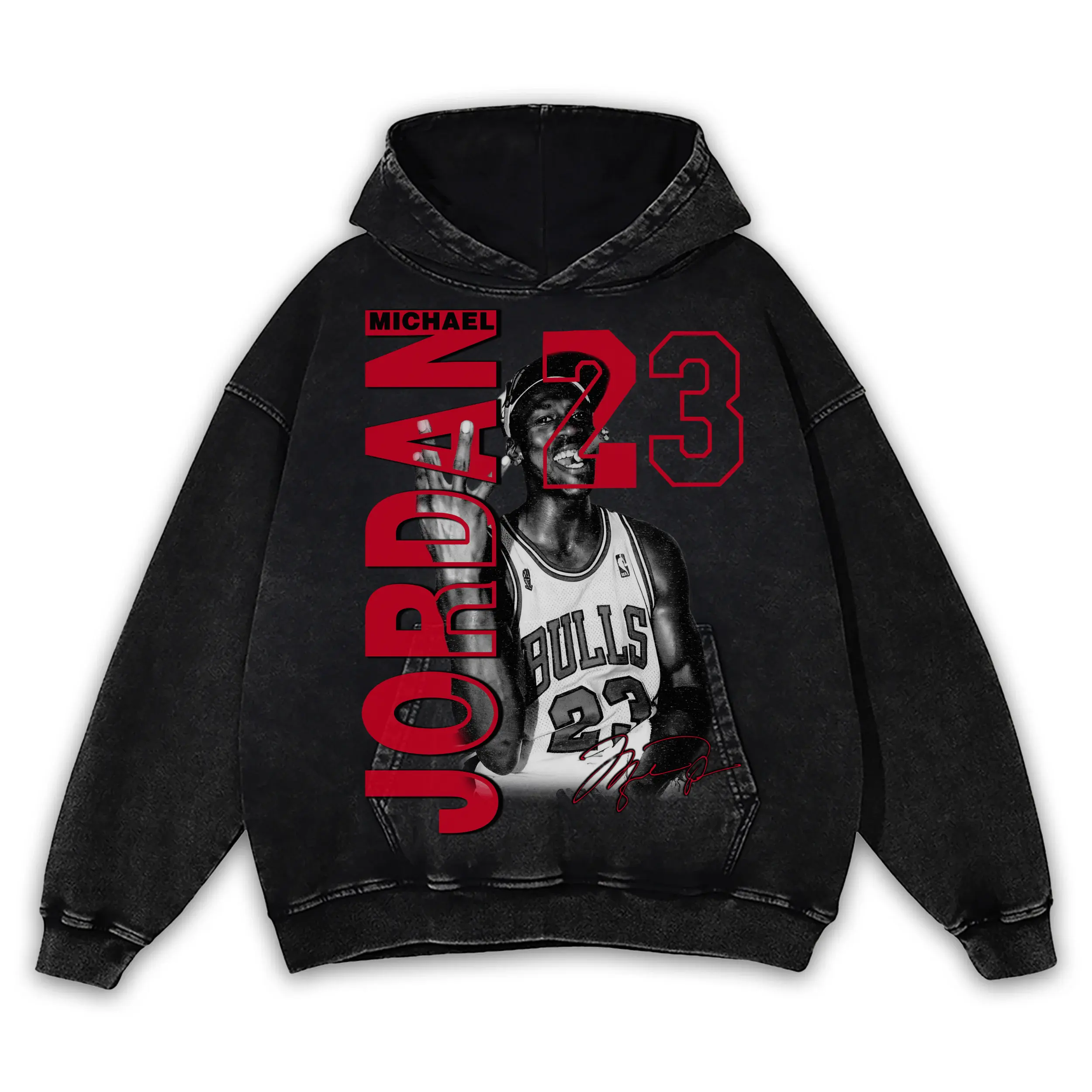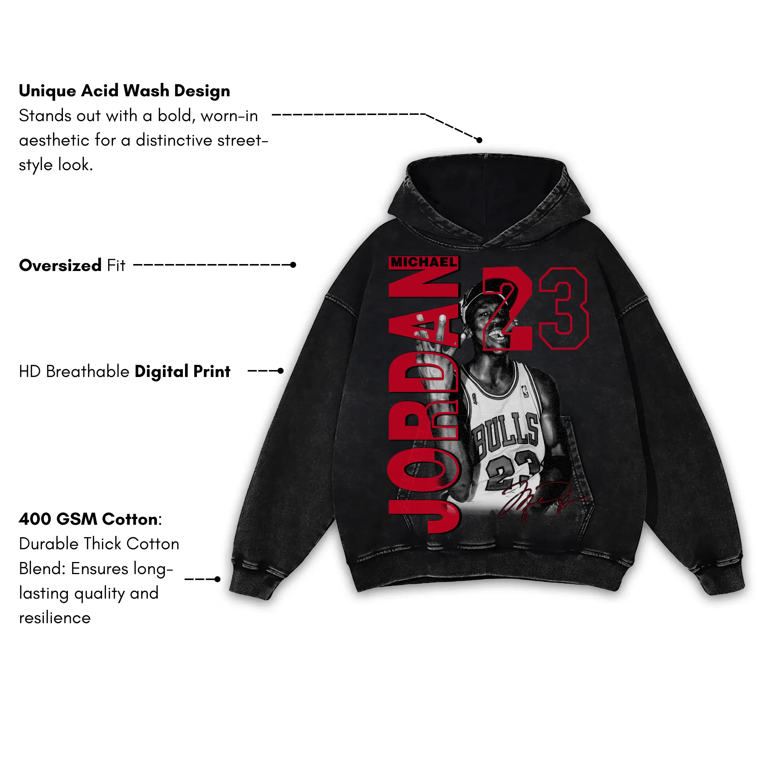 Retro Red x Michael Jordan ‘Trophy Cigar’ Vintage Acid Wash Hoodie – Black