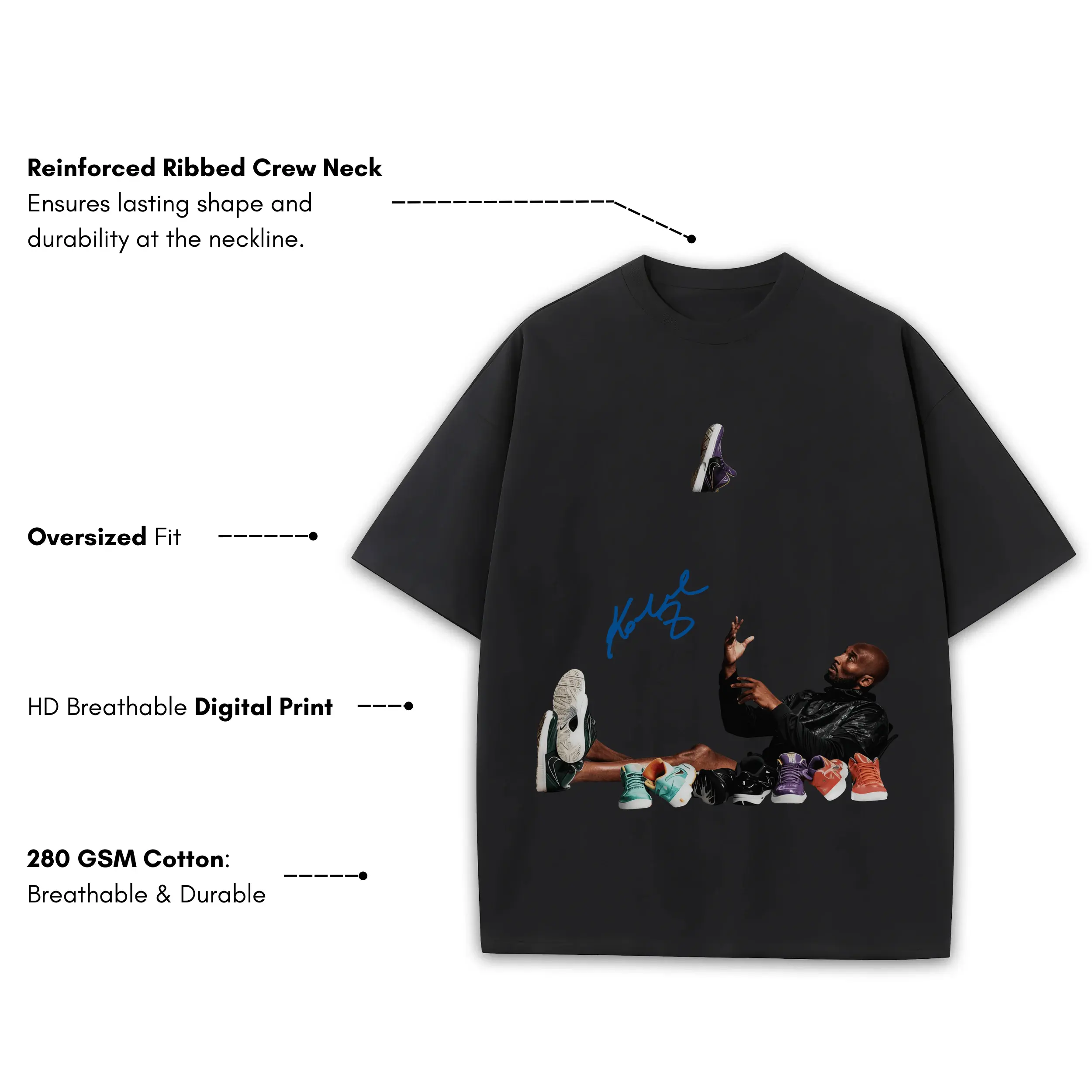 Retro Royal x Kobe Bryant ‘Sneakers’ Heavyweight Tee – Black