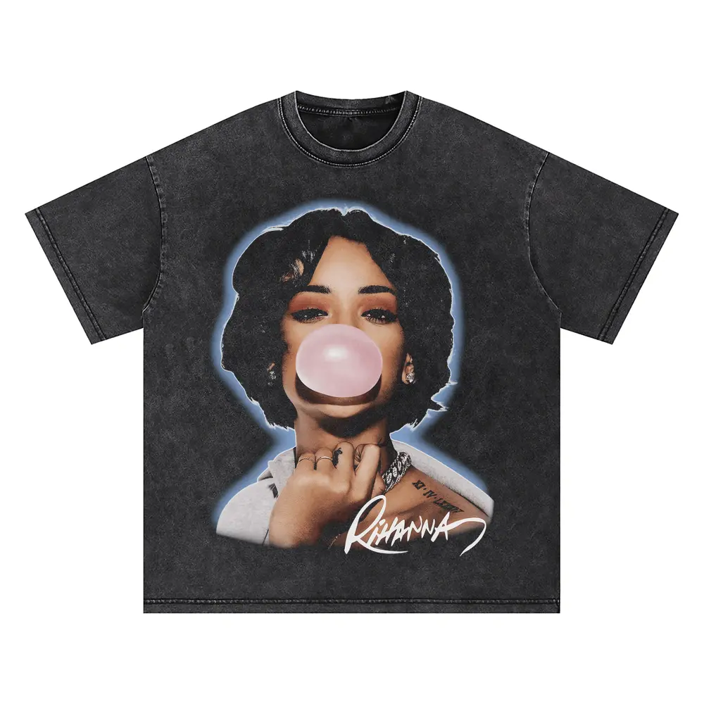 Rihanna Bubblegum Portrait Oversized Acid Wash T-shirt