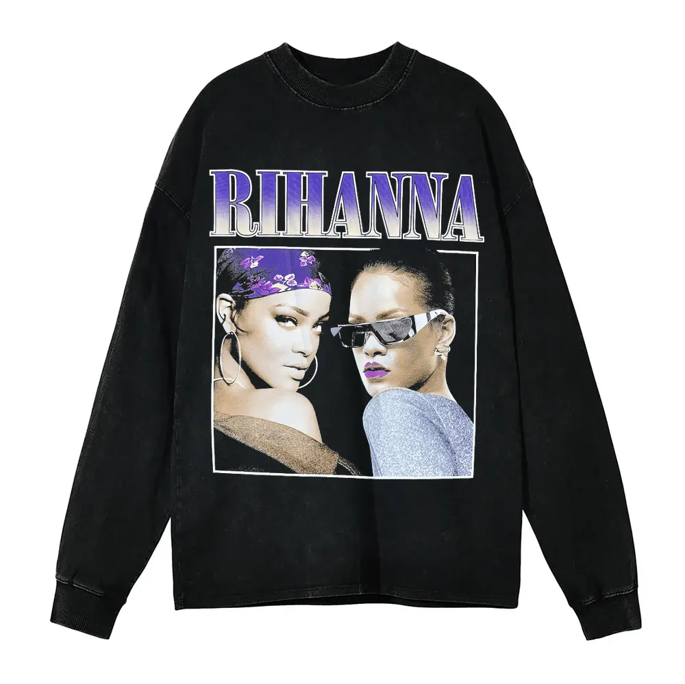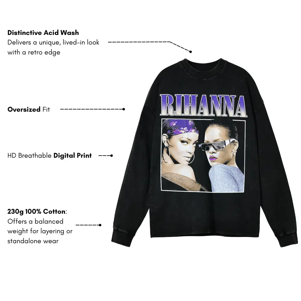 Rihanna Double Vision Aicd Wash Oversized Long Sleeve Shirt