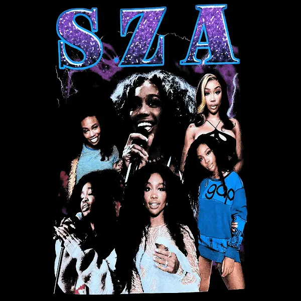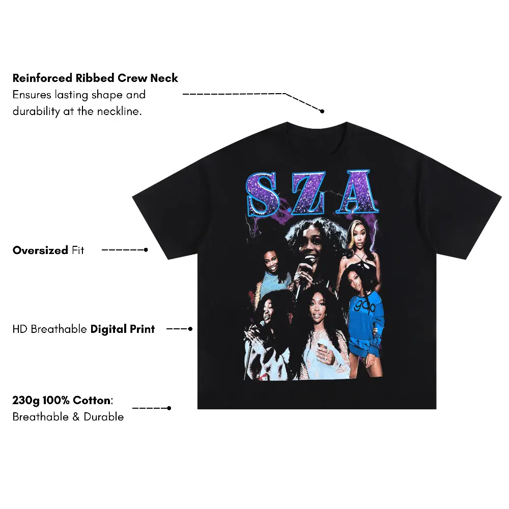 SZA Blue Dream Collage Oversized Black Graphic Tee