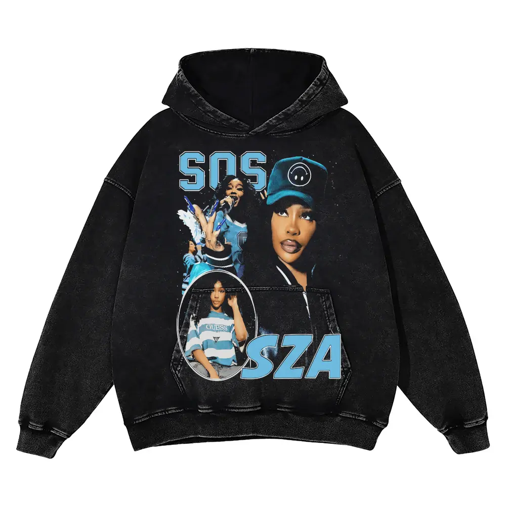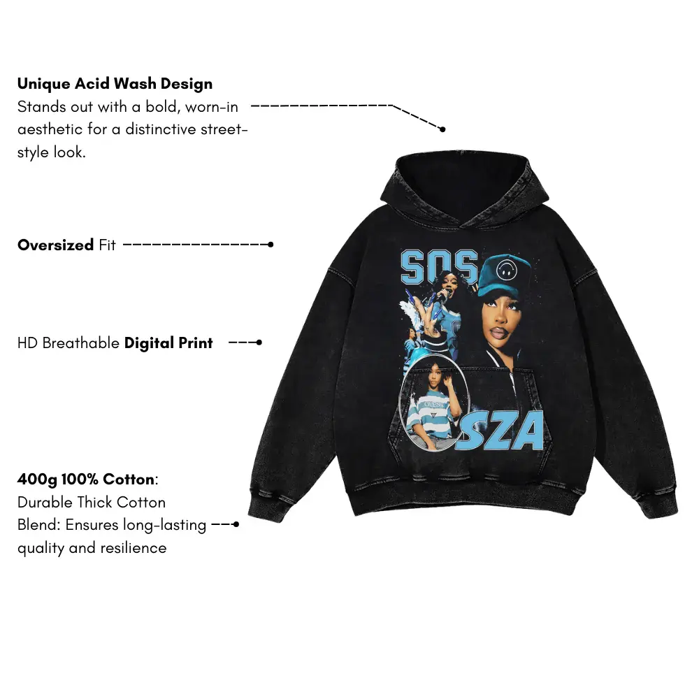 SZA SOS Lifeguard Tribute Aicd Wash Oversized Hoodie