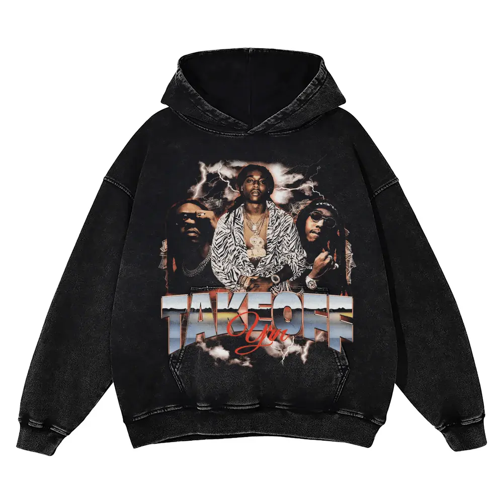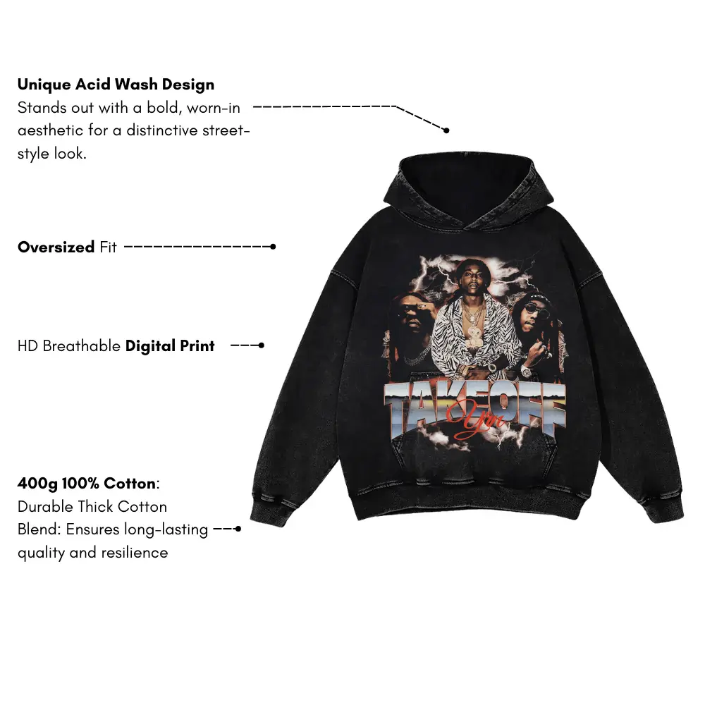 Takeoff The Last Rocket Aicd Wash Oversized Hoodie