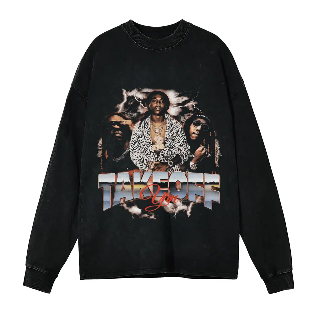 Takeoff The Last Rocket Aicd Wash Oversized Long Sleeve Shirt