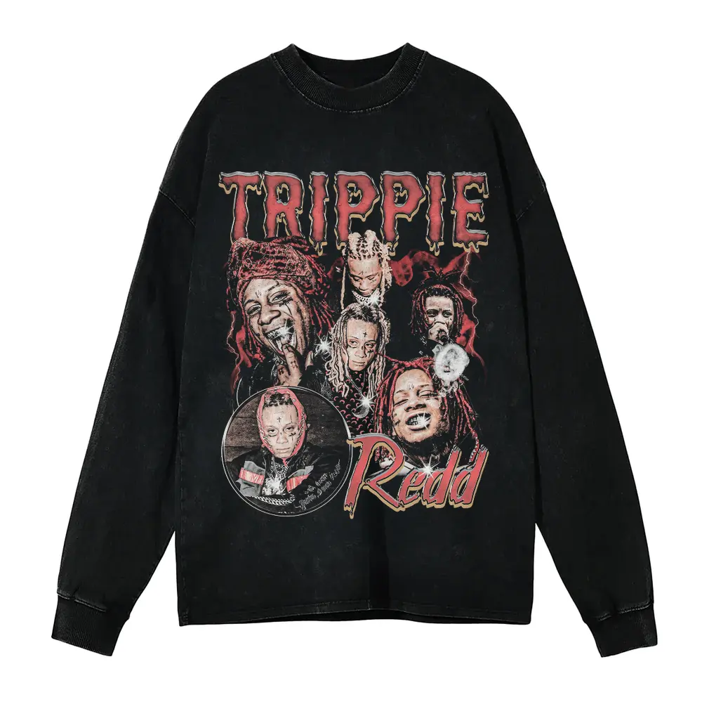 Trippie Redd Trip At Knight Aicd Wash Oversized Long Sleeve Shirt