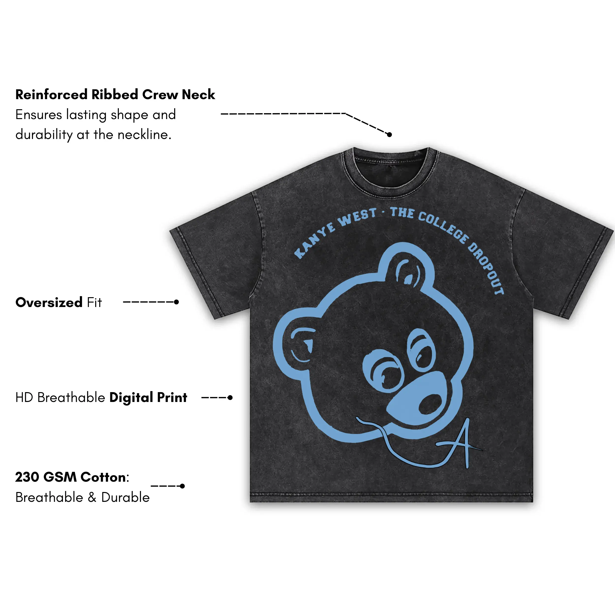 University Blue x Kanye West ‘Bear Outline’ Vintage Acid Wash Tee