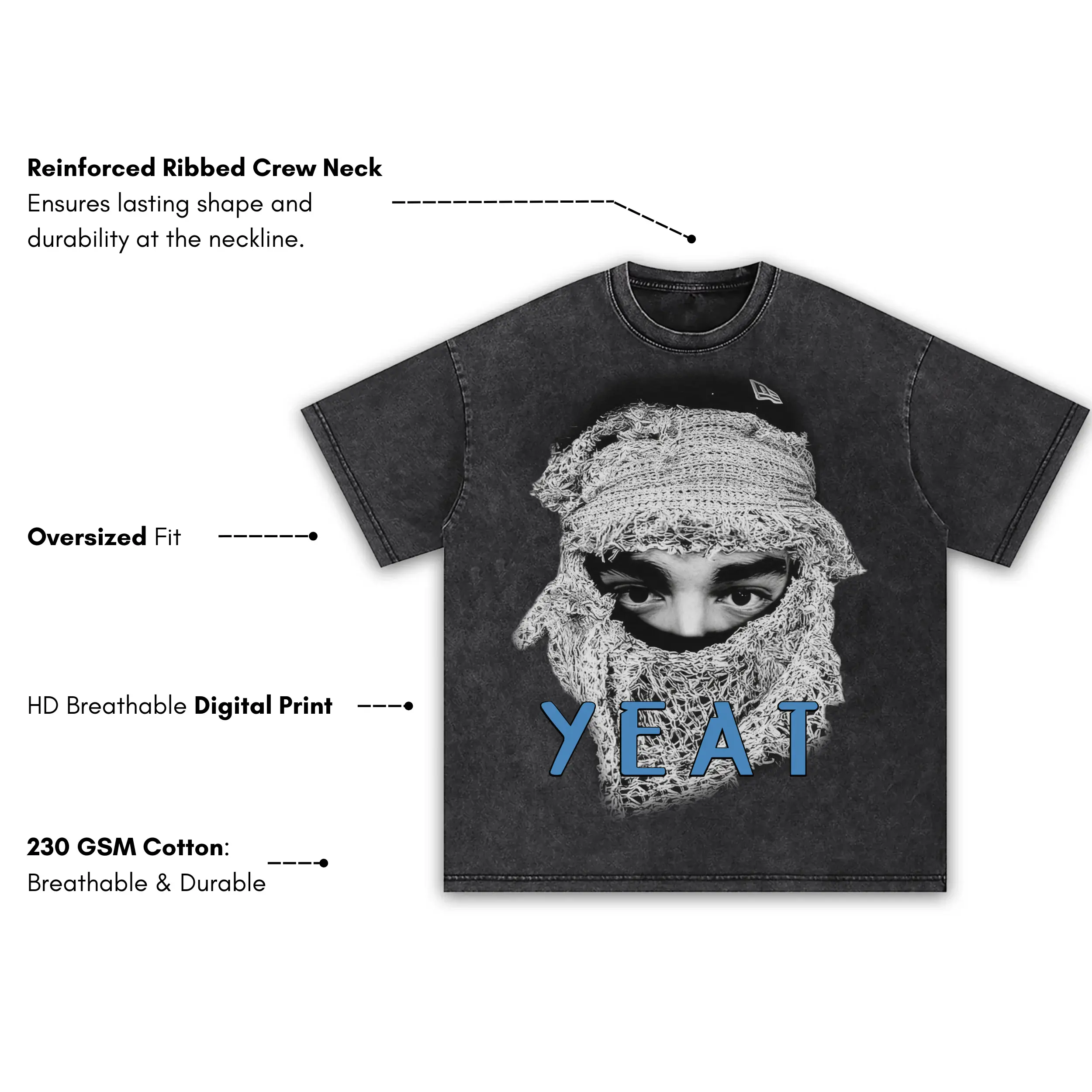 University Blue x Yeat ‘Ski Mask’ Vintage Acid Wash Tee