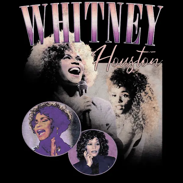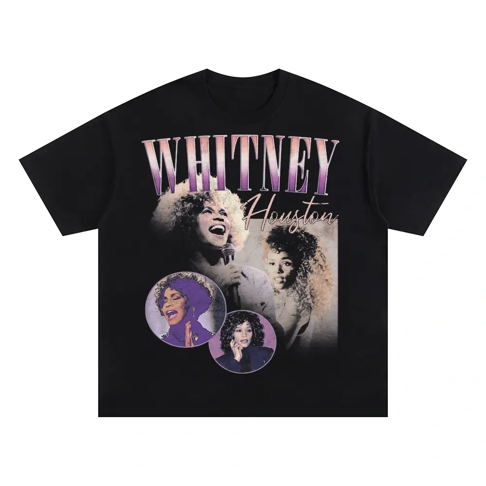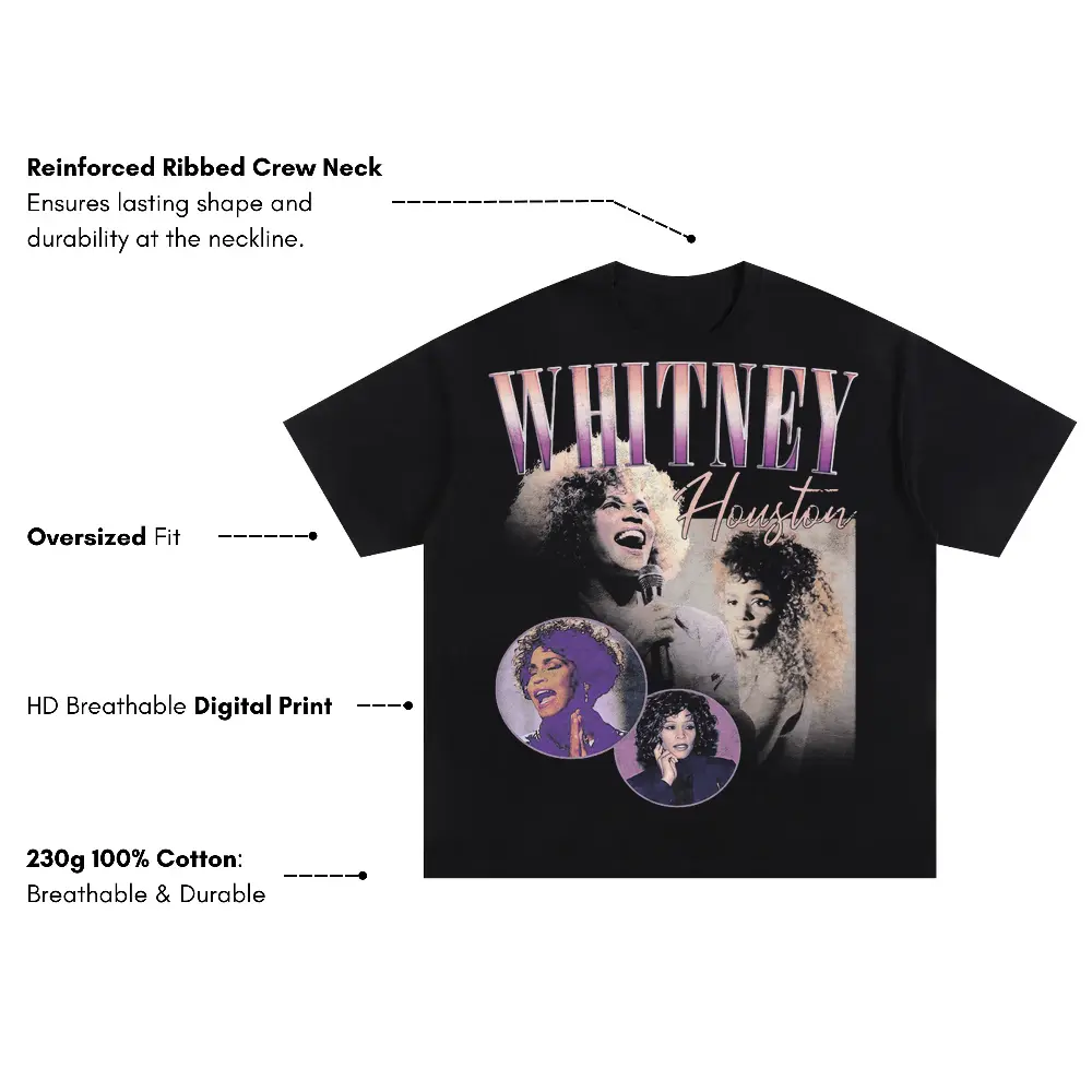 Whitney Houston Purple Tribute Oversized Black Graphic Tee