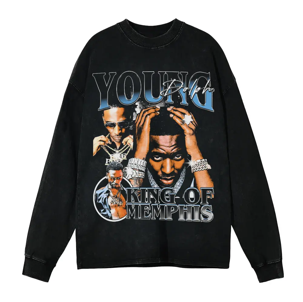 Young Dolph King Of Memphis Aicd Wash Oversized Long Sleeve Shirt