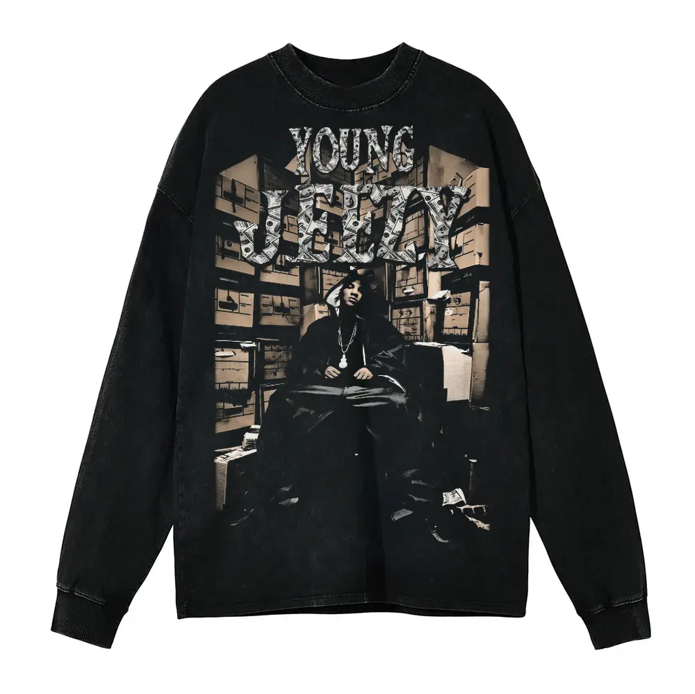 Young Jeezy Thug Motivation Aicd Wash Oversized Long Sleeve Shirt
